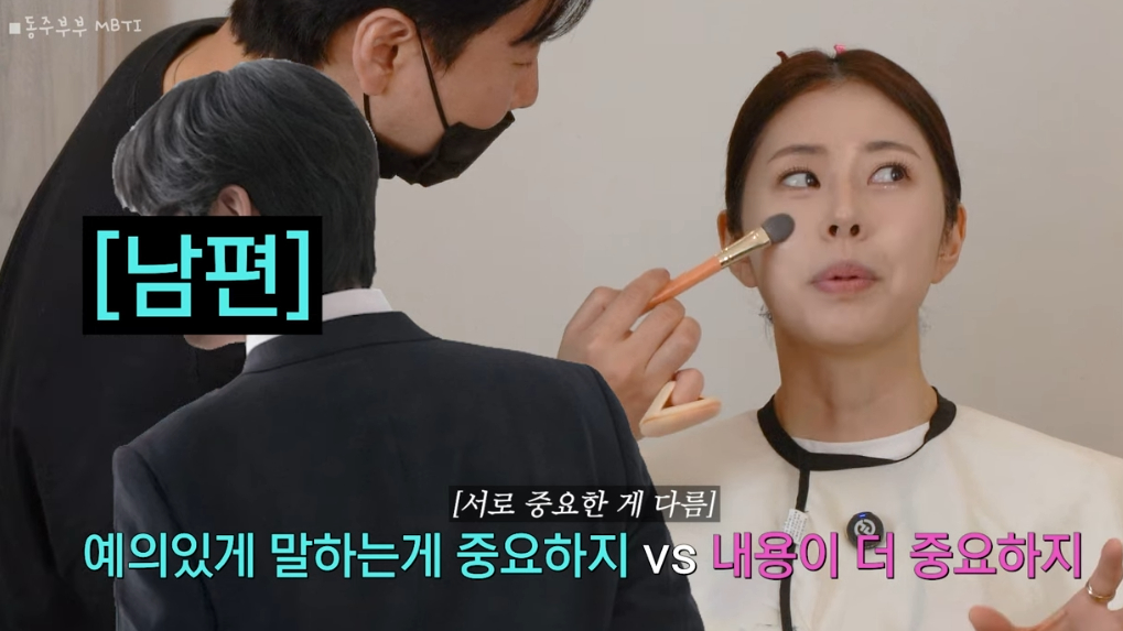 서동주는 자신이 남편을 대하는 모습이 영혼이 없어 보인다는 지적에 놀라며 "감정 듬뿍이야"라고 말했다. 남편의 MBTI가 ESFJ이고 자신은 ENTJ인 서동주는 "신랑은 안 좋은 말도 나이스하게 말하면 말투가 괜찮으면 이해할 수 있다고 한다. 나는 말투가 나이스해도 내용이 날카로우면 화가 난다"라고 말했다.