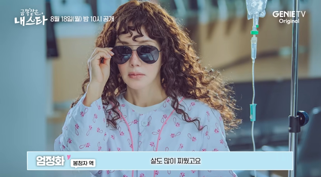 '금쪽같은 내 스타'는 대한민국 최고의 톱스타가 하루아침에 평범한 중년 여성이 된 후 펼쳐지는 눈물 콧물 휘날리는 세월 순삭 로맨틱 코미디. 엄정화는 극중 25년치 기억을 몽땅 날려버린 경력단절 톱스타 봉청자 역을 맡았다.