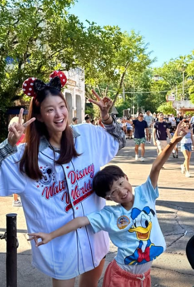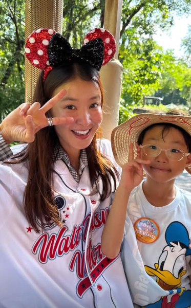 이시영은 18일 미국에서 아들 정윤과 함께 놀이공원을 찾은 사진을 게재했다.