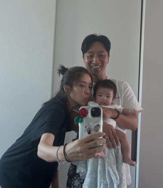최근 공개된 사진에는 생후 3개월 된 딸 해이와 남편 이규혁, 그리고 손담비까지 세 가족이 거울 앞에서 셀카를 찍는 모습이 담겨 눈길을 끌었다. 편안한 차림으로 거울을 향해 미소 짓는 이들 부부와 해이를 품에 안은 다정한 모습이 훈훈함을 자아냈다.