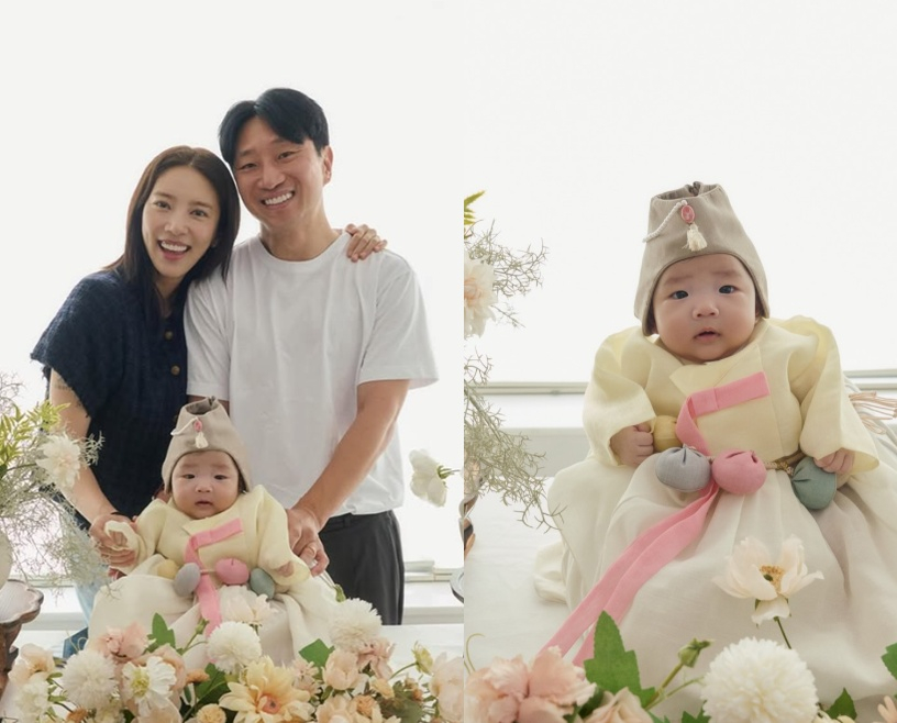 가수 겸 배우 손담비가 딸 해이의 100일 근황과 함께 곱게 한복을 차려입은 모습을 공개했다.