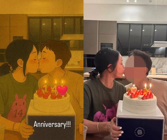 공개된 영상 속에는 'Anniversary'라는 글과 함께 남편과의 사진을 공개한 이혜영의 모습이 담겼다. 이혜영은 남편과 케이크를 들고 다정하게 찍은 사진을 지브리풍으로 변환해 눈길을 끌었다. 두 사람은 뽀뽀를 나누며 여전한 애정을 표현했다.