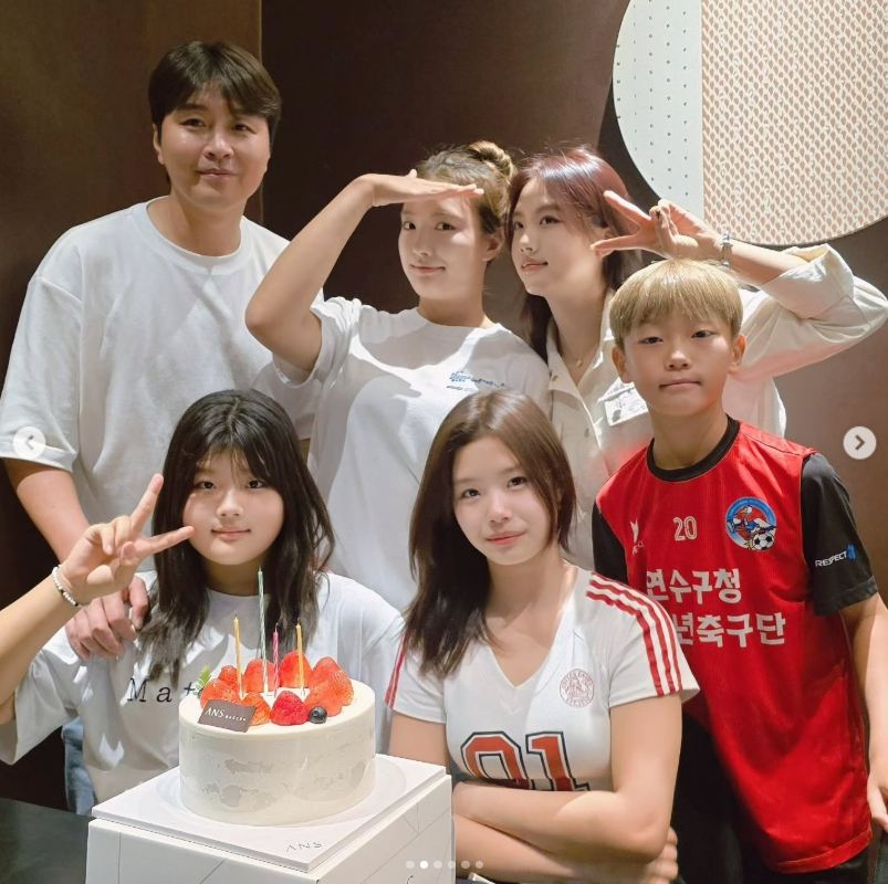 사진 속 이동국 가족은 설아와 수아의 생일을 축하하기 위해 모두 모여 화목하고 단란한 분위기를 자아내고 있는 모습. 모두 카메라를 향해 브이 포즈를 취하며 쌍둥이 가족의 붕어빵 비주얼을 자랑했다.
