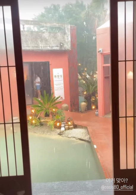 여기엔 손님들이 직접 방문하여 찍은 카페 풍경이 펼쳐졌는데, '폭우'로 인한 아찔한 상황이 고스란히 담겼다. 정원에 장식된 우물엔 물이 넘칠 듯 가득 차고, 나무들도 강풍에 심하게 흔들리는 모습이었다. 이에 한 손님은 영상에 "이거 맞아?"라며 걱정을 표하기도 했다. 19일은 전국 대부분 지역에 돌풍과 천둥, 번개를 동반한 호우 특보가 발효된 날이었다.