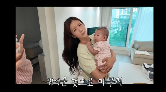 윤보미는 친구 소정 씨의 딸을 품에 안고 "너무 귀엽다"고 말했다.