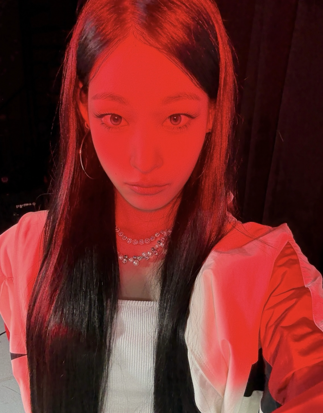 공개된 사진 속 애니는 무대 메이크업을 한 채 카메라 앞에서 청순하면서도 도도한 분위기를 자아내는 표정으로 셀카를 촬영하고 있으며, 붉은 조명 아래에서도 고혹적인 매력을 과시했다. 특히 무쌍임에도 또렷한 눈매가 눈길을 끌었다.