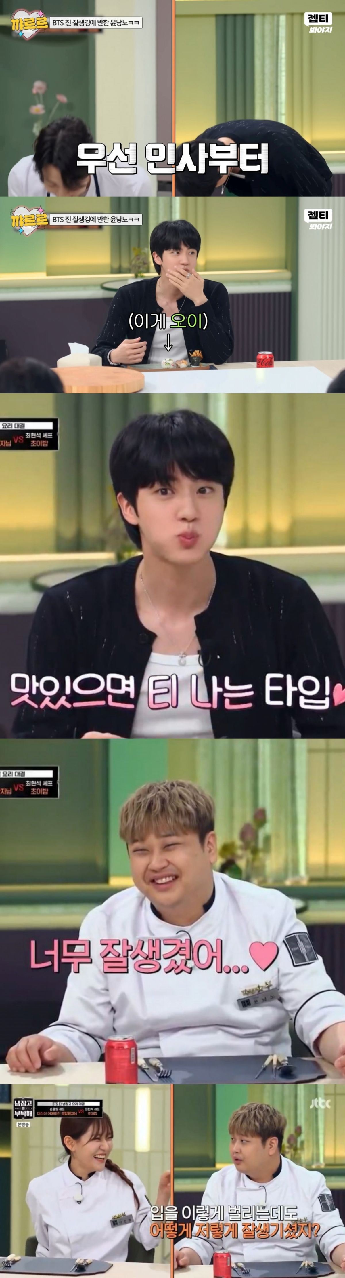 방탄소년단(BTS) 진이 최고의 비주얼과 눈부신 매너, 센스로 냉부해 셰프들과 시청자들을 사로잡았다.