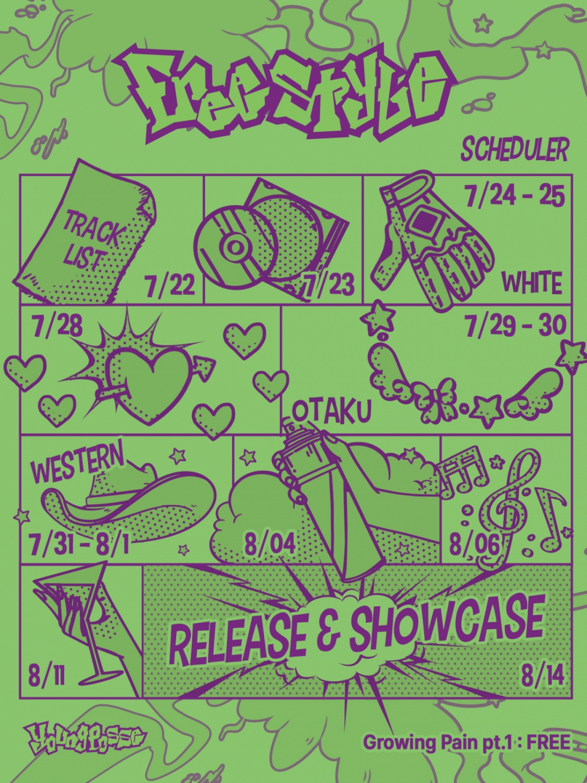 공개된 스케줄러에는 키치한 무드의 컬러감 속에 CD, 글러브, 웨스턴 햇, 음표, 칵테일 등 의문의 그림들이 각 프로모션 일정에 배치돼 궁금증을 더했다. 컴백마다 늘 틀을 깨는 청개구리 행보를 펼쳐온 영파씨인 만큼 팬들의 추리력을 발동시키며 컴백 열기를 더했다.