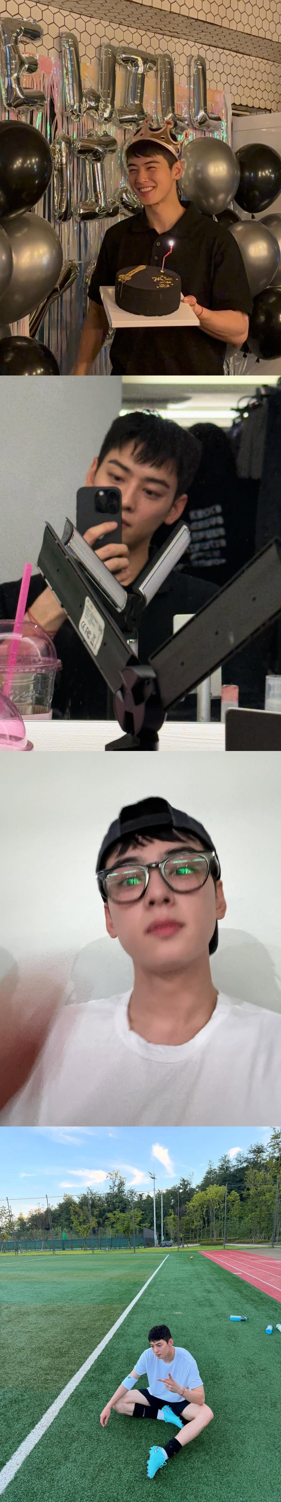 차은우는 21일 오후 자신의 인스타그램에 "요즘"이라는 메시지와 함께 근황 사진을 대방출했다.