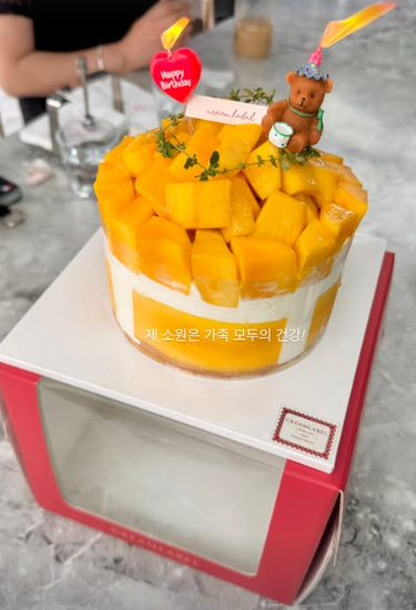 이어 "제 소원은 가족 모두의 건강"이라며 생일 케이크와 디올백 선물도 공개했다.
