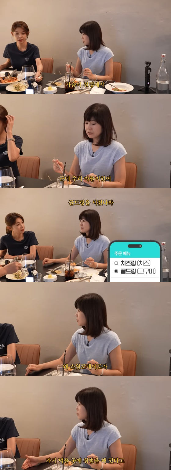 그는 "학원에서 전화가 오길래 가슴이 철렁했는데 아들이었다. 내가 피자를 시켜줬는데, 노안이 와서 '치즈링'을 '골드링'으로 잘못 보고 주문한 것 같다"고 상황을 설명했다.