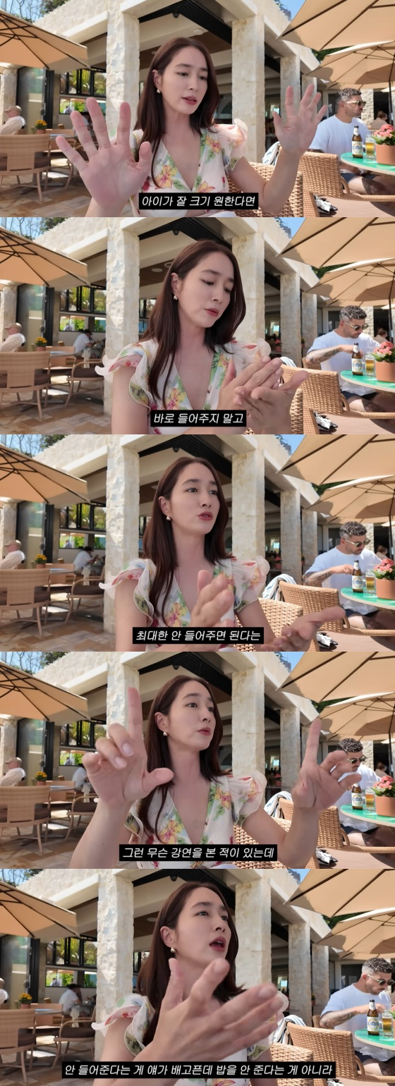 이민정은 "(아이가 원하는 걸) 안 들어준다는 게 애가 배가 고픈데 밥을 안 주는 게 아니라 아이가 원하는 걸 바로바로 들어주면 애는 결핍이 없어지니까 성장이 안 된다는 것"이라고 설명했다.