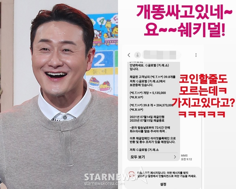 해당 누리꾼은 "문자 발송날로부터 72시간 안에 회수 의사를 말씀주셔야 하며 이후 채굴 업체로 반환 및 환수 조치가 있을 예정"이라며 겁을 줬다. 물론 이는 사기였다. 정작 김원효는 코인을 할 줄도 몰랐던 것. 김원효는 자신과 똑같은 문자를 받을지도 모르는 팬들에게 사기 피해 예방 차원에서 쓴소리를 하며 속시원함을 안겼다.
