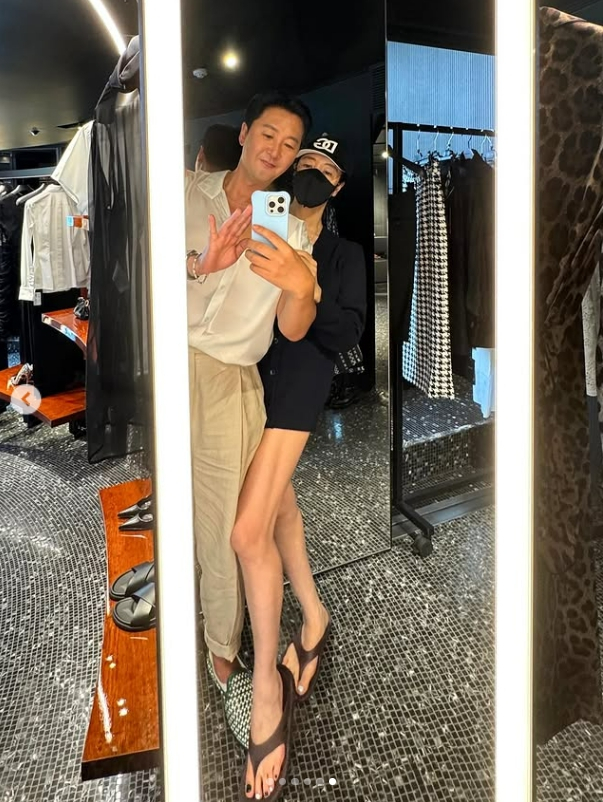 사진 속 김혜수는 방송인 겸 사업가 오제형과 쇼핑에 나선 모습. 평소 두터운 친분을 유지하고 있는 두 사람은 거울을 바라보며 얼굴을 맞댄 채 해맑게 웃고 있다.