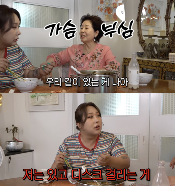 이어 그는 "없는 것보다 있는 게 나아"라고 덧붙였고, 풍자는 "있고 디스크 걸리는 게 나을 것 같다"라고 받아치며 수위 높은 농담으로 분위기를 유쾌하게 만들었다.