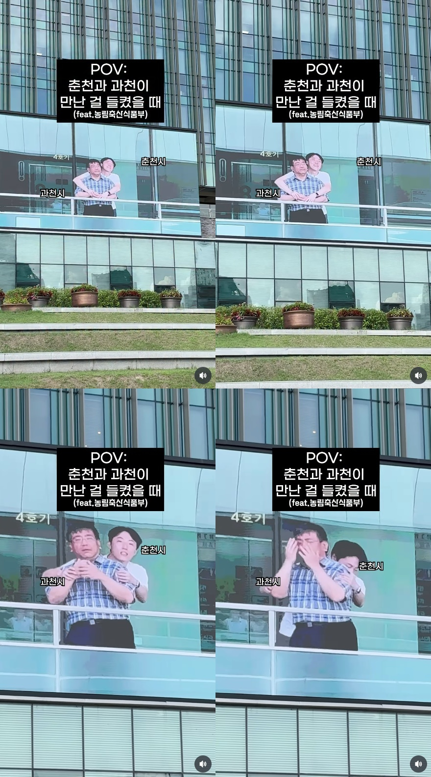지난 23일 춘천시는 공식 SNS에 "POV: 춘천과 과천이 만난 걸 들켰을 때(feat.농림축산식품부)"라며 동영상을 게재했다.