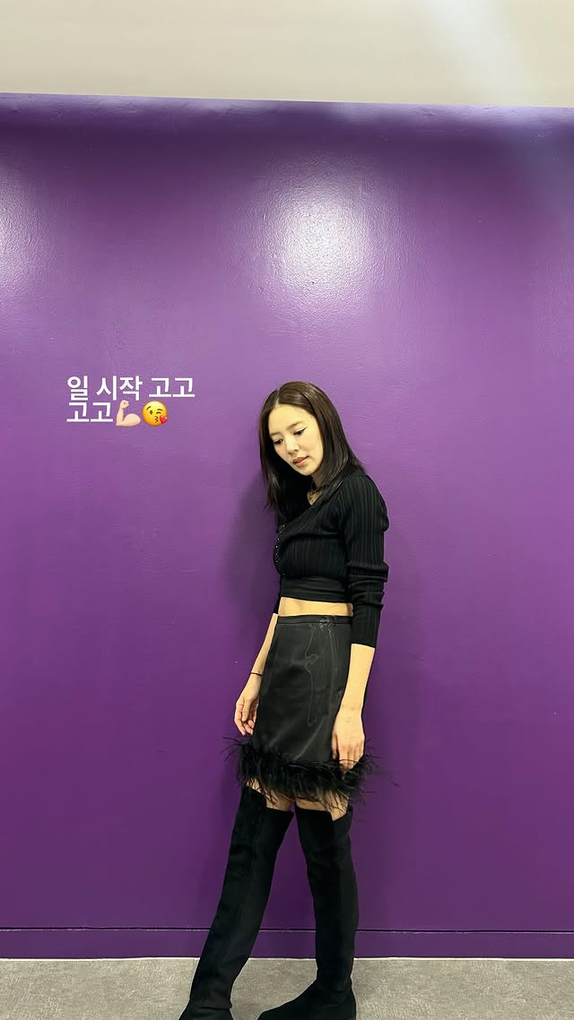 공개된 사진 속에는 출산 석 달 만에 완벽한 몸매를 자랑하는 손담비의 모습이 담겼다. 손담비는 "일 시작"이라며 기대감을 표현했다.