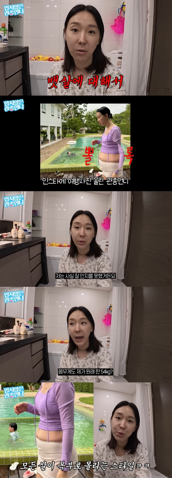 그는 "저는 제가 살 쪘다고 생각을 하지 않아서 인지를 못했다"며 "몸무게도 54kg 전후로 왔다 갔다한다. 그런데 모든 살이 복부로 몰리는 스타일"이라고 설명했다.
