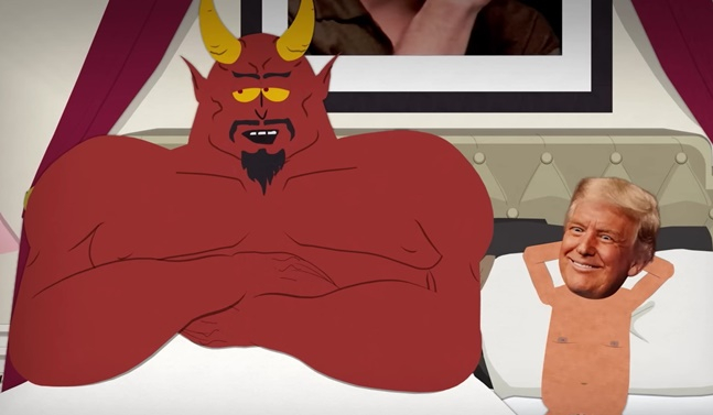 지난 23일(현지시간) 공개된 사우스파크 27번째 시즌 첫 에피소드 말미에는 트럼프를 찬양한다는 명목으로 제작된 AI 딥페이크 영상이 등장한다. 영상에서는 벌거벗은 트럼프가 사막을 기어다니다 누워서 자신의 성기를 바라보는 장면이 나오고, "트럼프: 그의 성기는 아주 작지만, 우리를 향한 그의 사랑은 거대합니다"라는 나레이션이 흘러나온다.