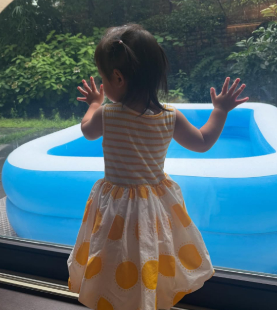 공개된 사진에는 이병헌, 이민정 부부의 딸 서이가 마당에 설치된 물놀이장을 바라보는 모습이 담겼다.