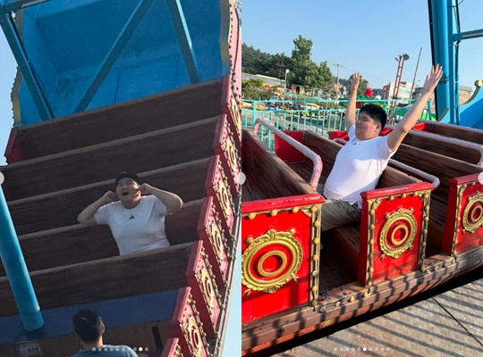 아들은 엄마의 얼굴을 사랑스럽게 바라보는가 하면, 사람이 많지 않은 놀이공원에서 즐거운 시간을 보내고 있다.