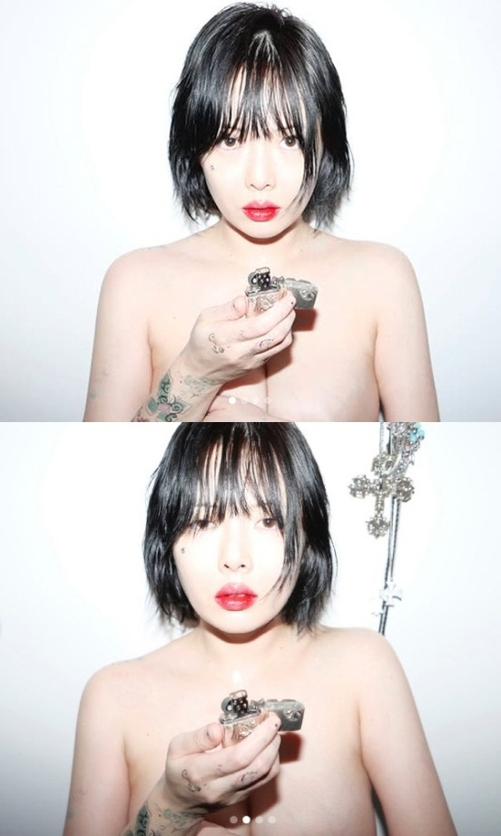 가수 현아가 누드 사진을 공개해 화제다.