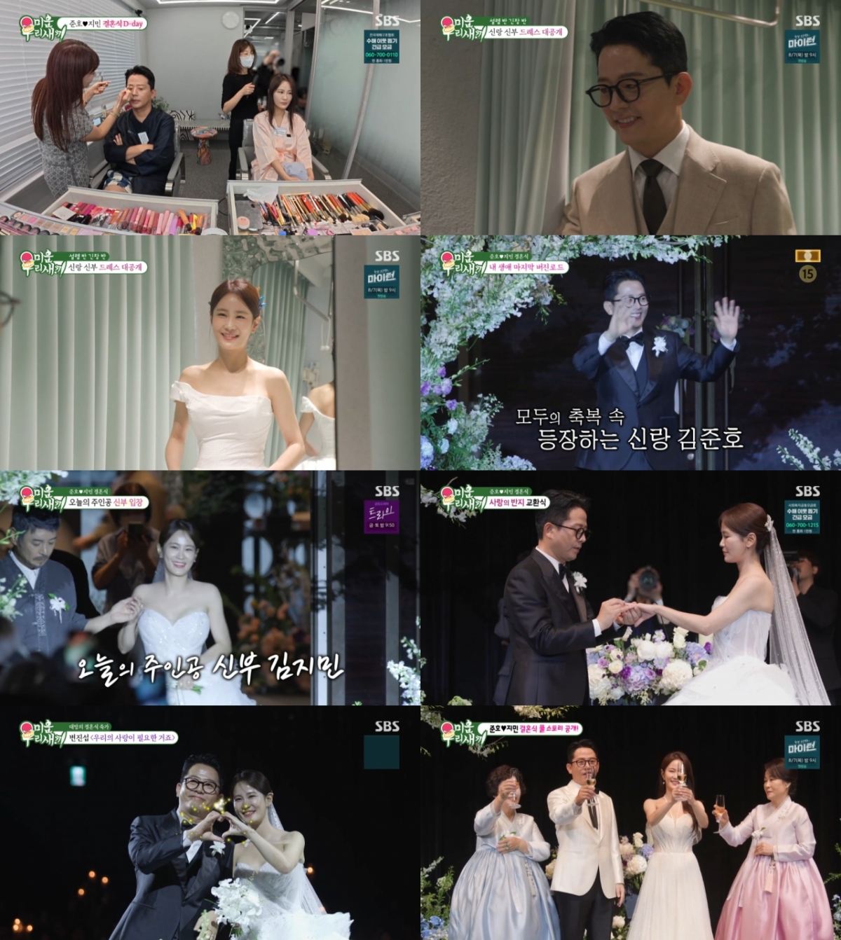 또한 가수 거미, 김지민의 로망이었던 변진섭의 축가가 현장을 가득 채운 뒤 결혼식 2부가 시작됐다. 김지민의 어머니는 두 사람 몰래 깜짝 축하 메시지를 준비했고, 그 진심 어린 말에 감동한 김지민은 결국 눈물을 흘려 보는 이들의 마음을 뭉클하게 했다.