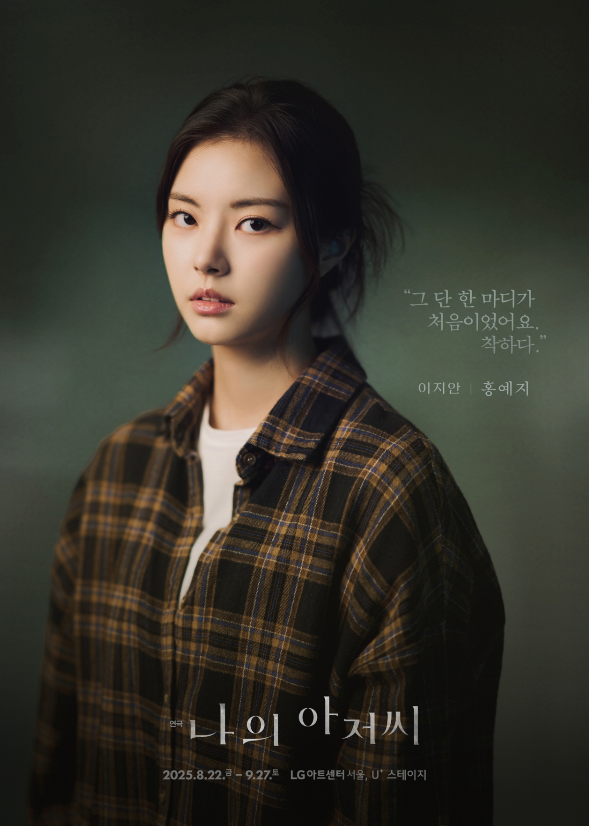 오는 8월 LG아트센터 서울 U+ 스테이지에서 개막하는 연극 '나의 아저씨'의 이지안 역을 맡은 배우 홍예지의 개인 포스터가 공개돼 눈길을 끈다.