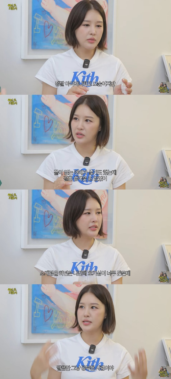 박은지는 "정말 난 결혼 생각이 없었다. 2017년, 그때 현타(현실 자각 타임)가 좀 왔다. 연애를 하고 자꾸 헤어지고, 끝이 안 나는 연애가 너무 피곤했다"며 "정말 아이러니하고 모순이지만 끝이 없는 연애가 싫기도 했지만 결혼 생각은 없었다. 결혼에 자신이 없었다"고 답했다.