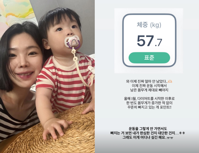 앞서 이다은은 자신의 출산 후 다이어트에 대해 "진짜 질문 많이 해주신다"라며 "임신 직전 몸무게로 가려면 아직 4kg 정도 남았다. 덩치 큰 아들을 품었던 몸이라 그런지 뭔가 뼈가 옛날같지 않고 허리통도 넓어지고 전체적으로 통이 커져서 리은이 낳았을 때랑은 다른 느낌이 있다"라고 말했다.