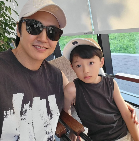 사진에는 윤상현이 7세 아들 희성 군과 커플룩을 입고 외식을 하러 나선 모습이 있었다.