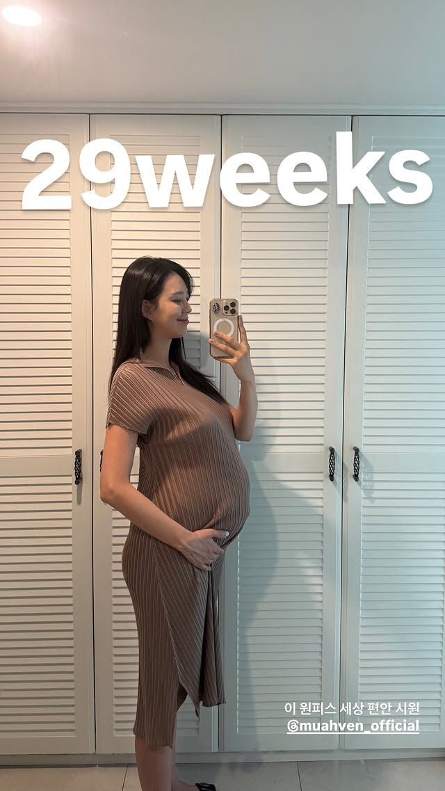 지소연은 30일 자신의 인스타그램에 "29weeks"라는 글과 함께 사진을 공개했다.