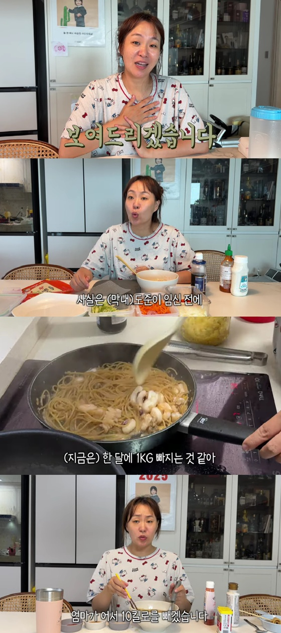 두 번째 식단으로는 통밀 파스타를 요리했다. 그는 요리하던 중 "지금은 한 달에 1kg 정도 빠지는 거 같다"고 설명했다.