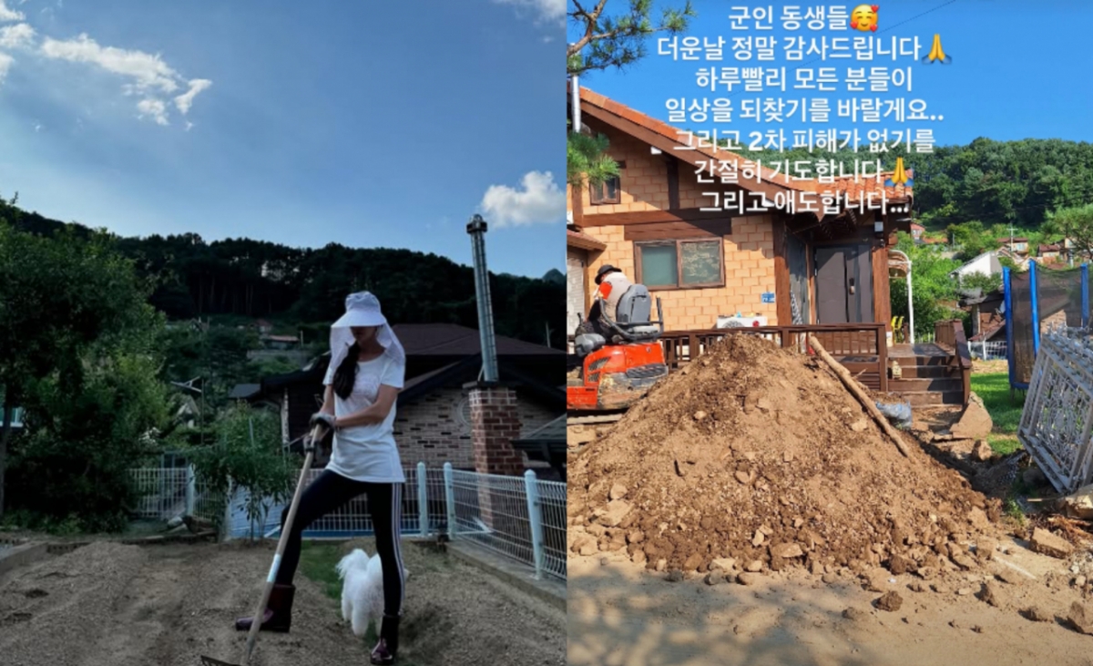 공개된 사진 속 경기도 가평에 위치한 서효림의 집에는 마당에 흙이 잔뜩 쌓인 모습이다. 그는 현재 산사태로 피해를 입은 집 복구에 나선 것으로 보이며 "복구에 힘써주시는 지자체 관계자분들 군인 동생들. 더운 날 정말 감사드립니다"라고 고마운 마음을 전했다.