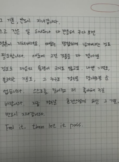 이어 "나쁜 기억도, 불쾌한 기분도, 그 누구도 당신을 망가뜨릴 순 없습니다. 스스로를 밀어주고 더 좋아해주길 바랍니다"라며 "지금 당신을 혼란스럽게 하는 그 기분, 반드시 지나갑니다. Feel it, then let it pass"라고 덧붙였다.