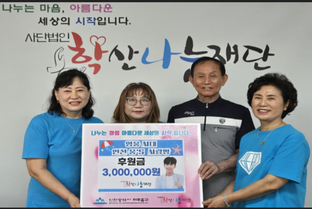영웅시대 인천웅's 사랑방은 "임영웅의 선한 영향력을 따라 앞으로도 꾸준하게 기부 활동을 펼치겠다"고 전했다.