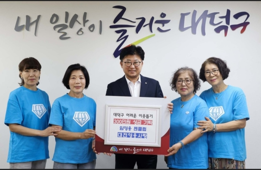 대전 대덕구(구청장 최충규)는 임영웅 팬클럽 '대전영웅사랑'이 어려운 이웃 돕기 성금 300만 원을 전달했다고 7일 밝혔다.