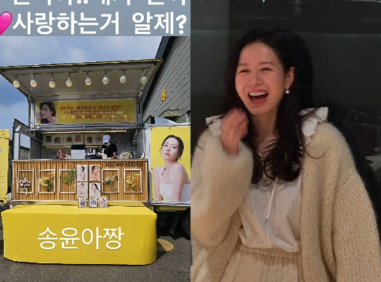 공개된 사진에는 손예진의 사진으로 도배한 커피차가 담겨있다. 동생 손예진을 응원하는 송윤아의 마음이 가득 담겼다.