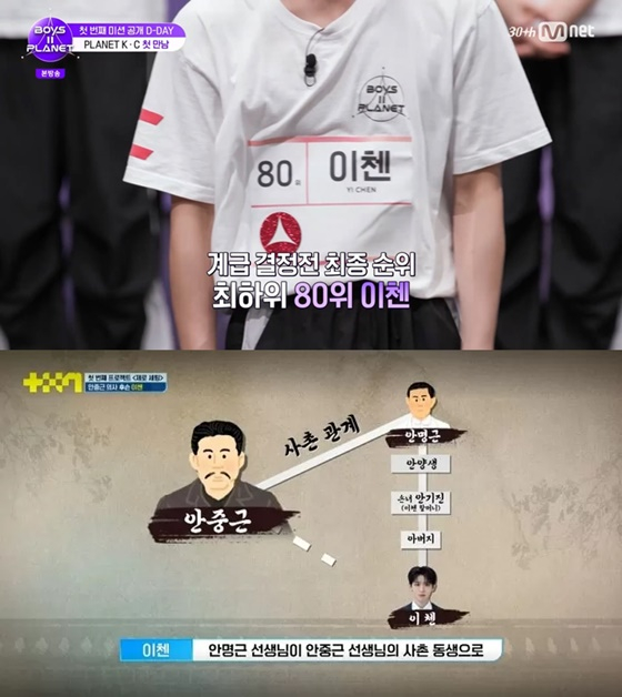 '보이즈 2 플래닛'의 C 플래닛 최하위 순위를 차지한 이첸이 안중군 의사의 후손으로 알려지며 그의 투표를 독려하는 움직임이 온라인 중심으로 확산되고 있다.