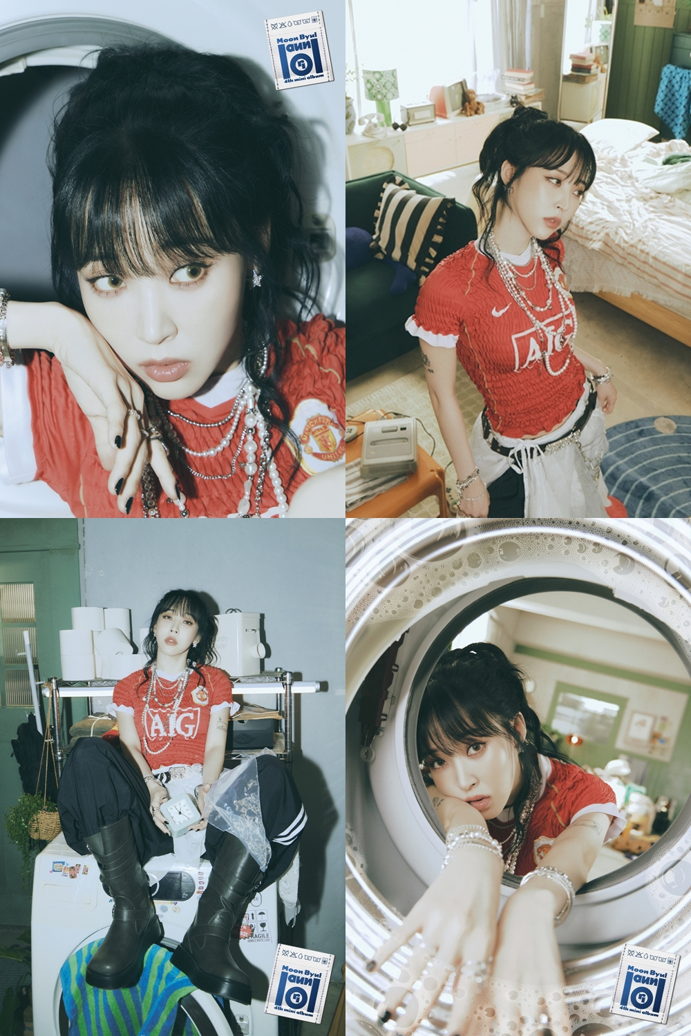 특히 문별은 세탁기에 걸터앉거나, 세탁기 안을 바라보는 등 세탁기를 오브제로 활용해 다양한 포즈를 취하고 있어 호기심을 자극했다.