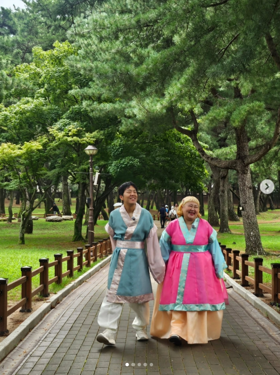 4일 홍윤화는 개인 SNS에 "진짜 더운데 경주 너무 좋아"라며 김민기와 함께 찍은 셀카 여러 장을 게재했다.