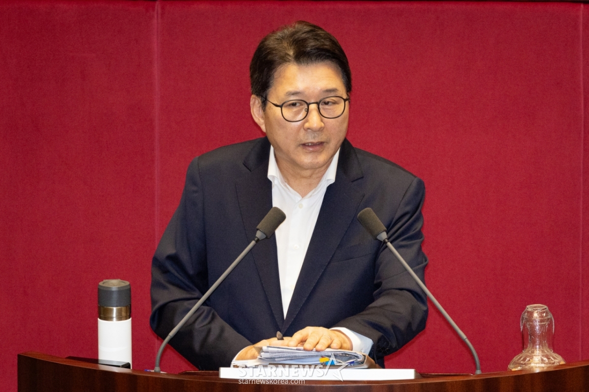 (서울=뉴스1) 유승관 기자 = 신동욱 국민의힘 의원이 4일 서울 여의도 국회에서 열린 제427회 국회(임시회) 3차 본회의에 상정된 방송법 일부개정법률안(대안)에 대한 무제한토론(필리버스터)을 하고 있다. 2025.8.4/뉴스1 Copyright © 뉴스1. All rights reserved. 무단 전재 및 재배포, AI학습 이용 금지. /사진=(서울=뉴스1) 유승관 기자