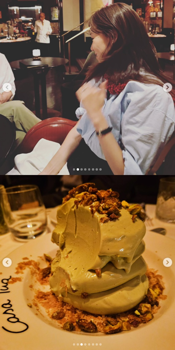 공개된 사진 속 공효진은 레스토랑에서 행복한 저녁 식사를 즐기고 있다. 특히 공효진은 케빈오와 함께 식사를 하고 이야기 나누는 달달한 투샷을 공개해 눈길을 끈다.