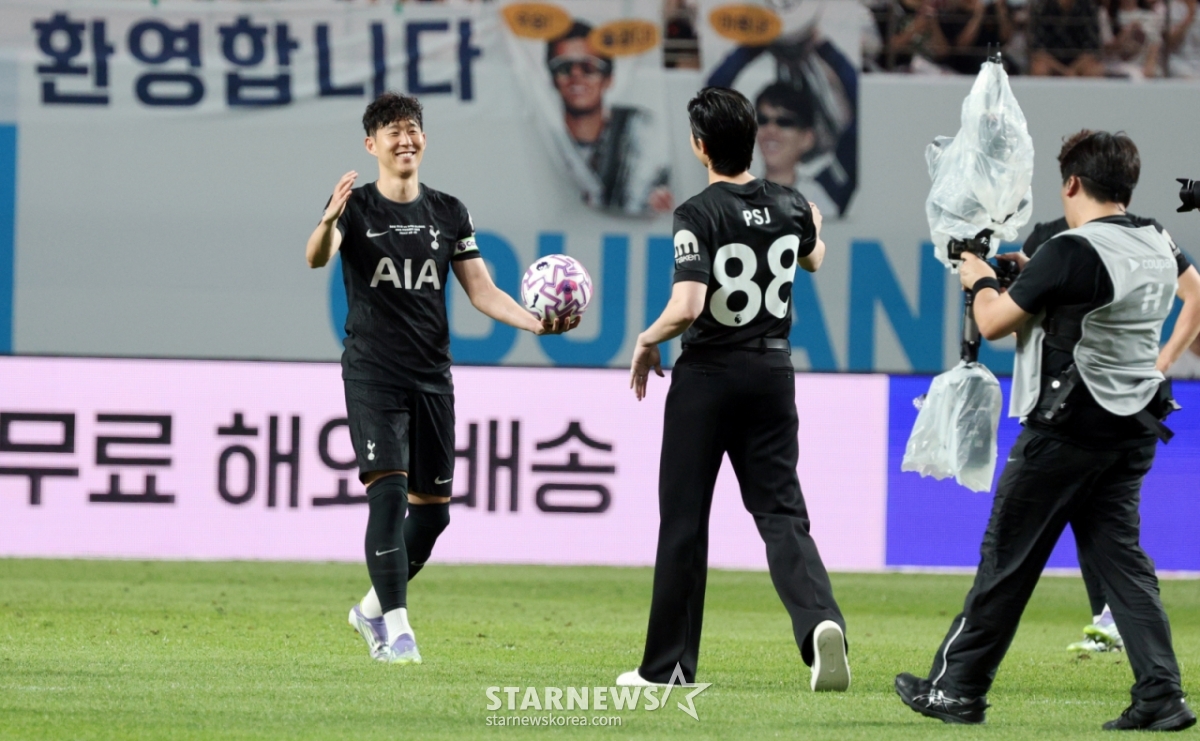 그는 지난 3일 서울월드컵경기장에서 열린 '2025 쿠팡플레이 시리즈' 토트넘 홋스퍼와 뉴캐슬 유나이티드의 경기에서 시축자로 나서 손흥민의 고별전을 응원했다. 지난 5월에는 손흥민이 토트넘 훗스퍼 소속으로 2024-2025 UEFA 유로파리그 결승전에서 우승 트로피를 들어 올릴 때도 함께하며 손흥민과 남다른 우정을 과시했다.