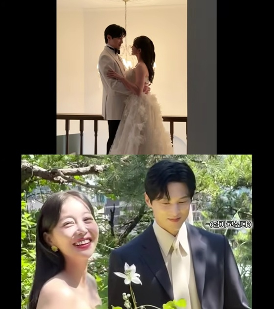 배우 김가은, 윤선우의 웨딩화보 촬영 현장이 공개됐다.