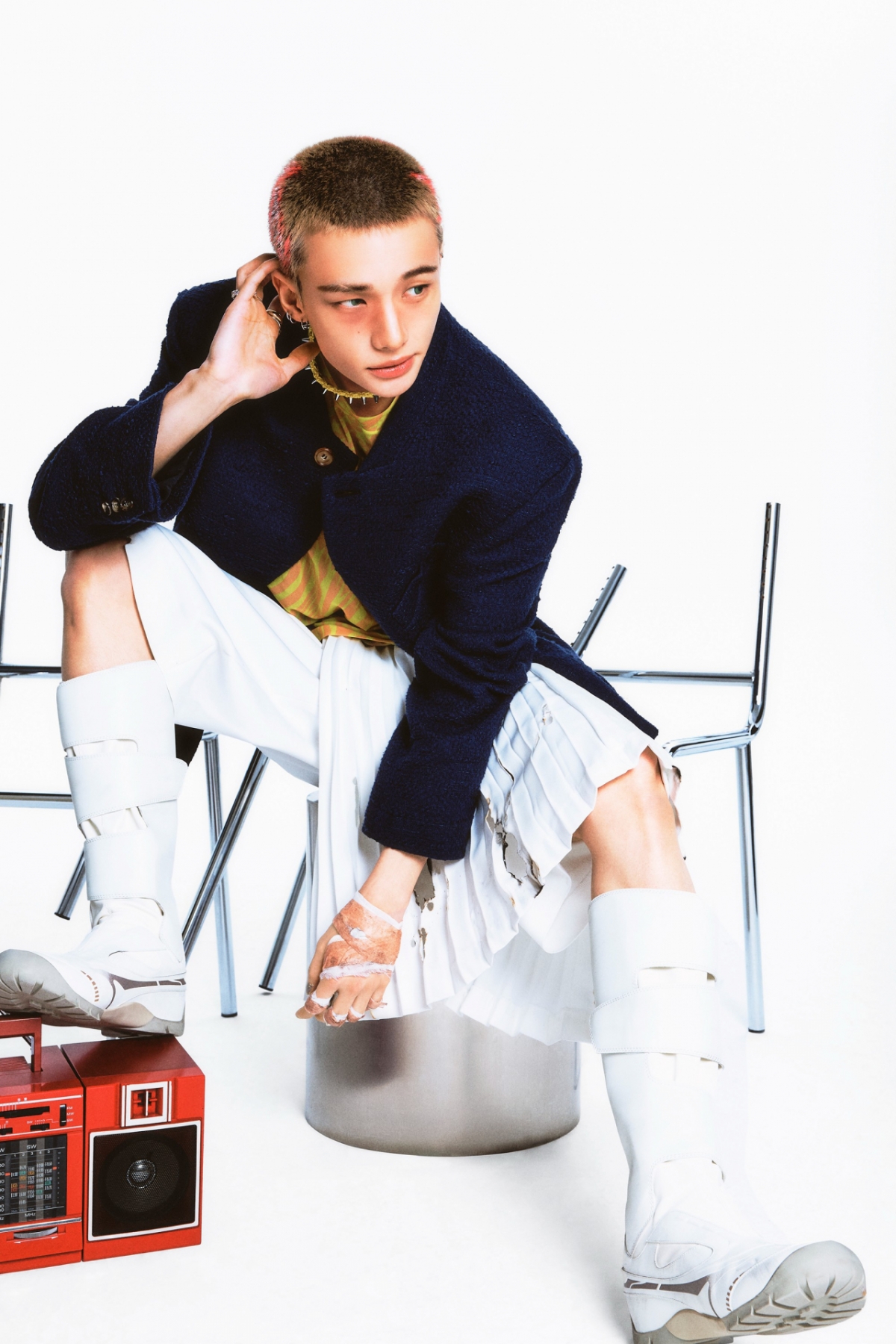 공개된 이미지 속 세 멤버는 글로벌 에이스 'TEAM SKZ'의 일원답게 위풍당당한 모습으로 시선을 잡아끈다. 그라운드 바깥에서 경기를 관망하듯 포즈를 취하며 최강자의 여유를 드러냈고 하이엔드 매거진 화보를 방불케 하는 매력적인 컷들로 보는 이들을 매료했다. 포멀한 블레이저에 스포티한 아이템을 믹스매치해 유니크한 멋을 살렸고 손가락 마디마다 감아놓은 테이핑과 상반되는 화려한 액세서리가 절묘하게 어우러지며 힙한 에너지를 전한다.