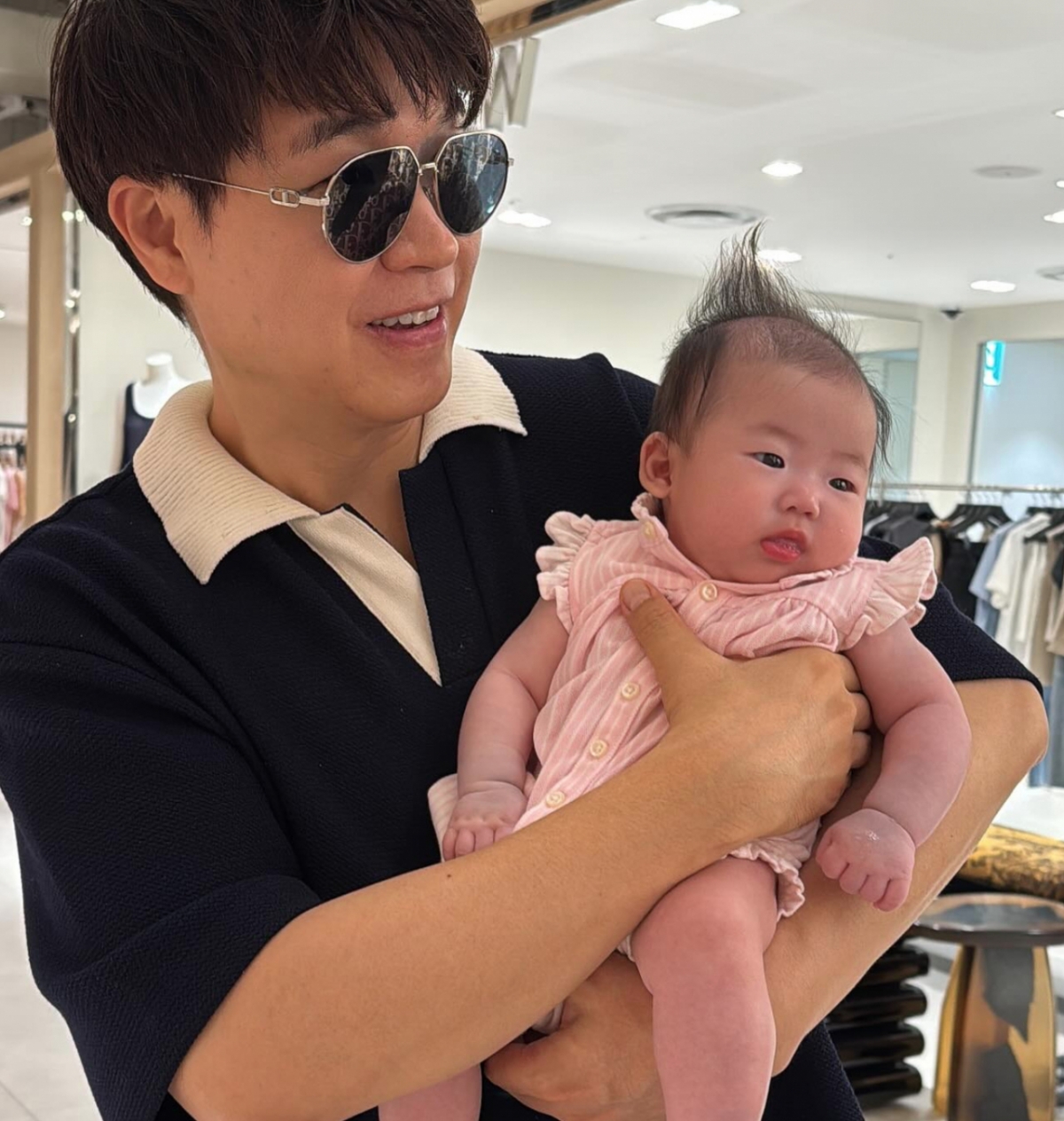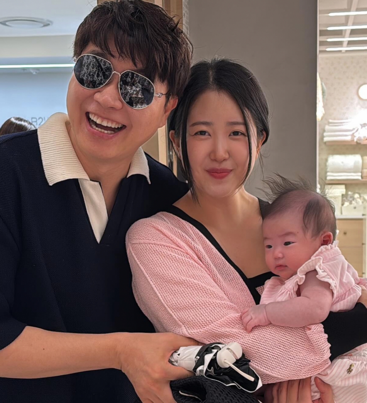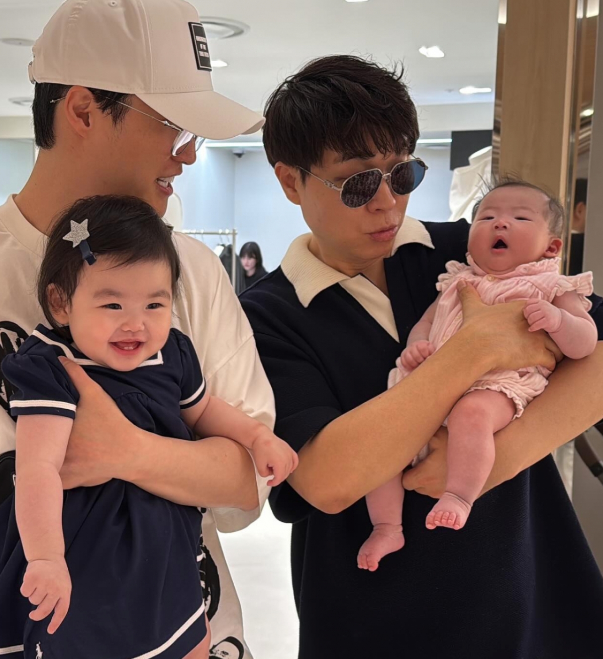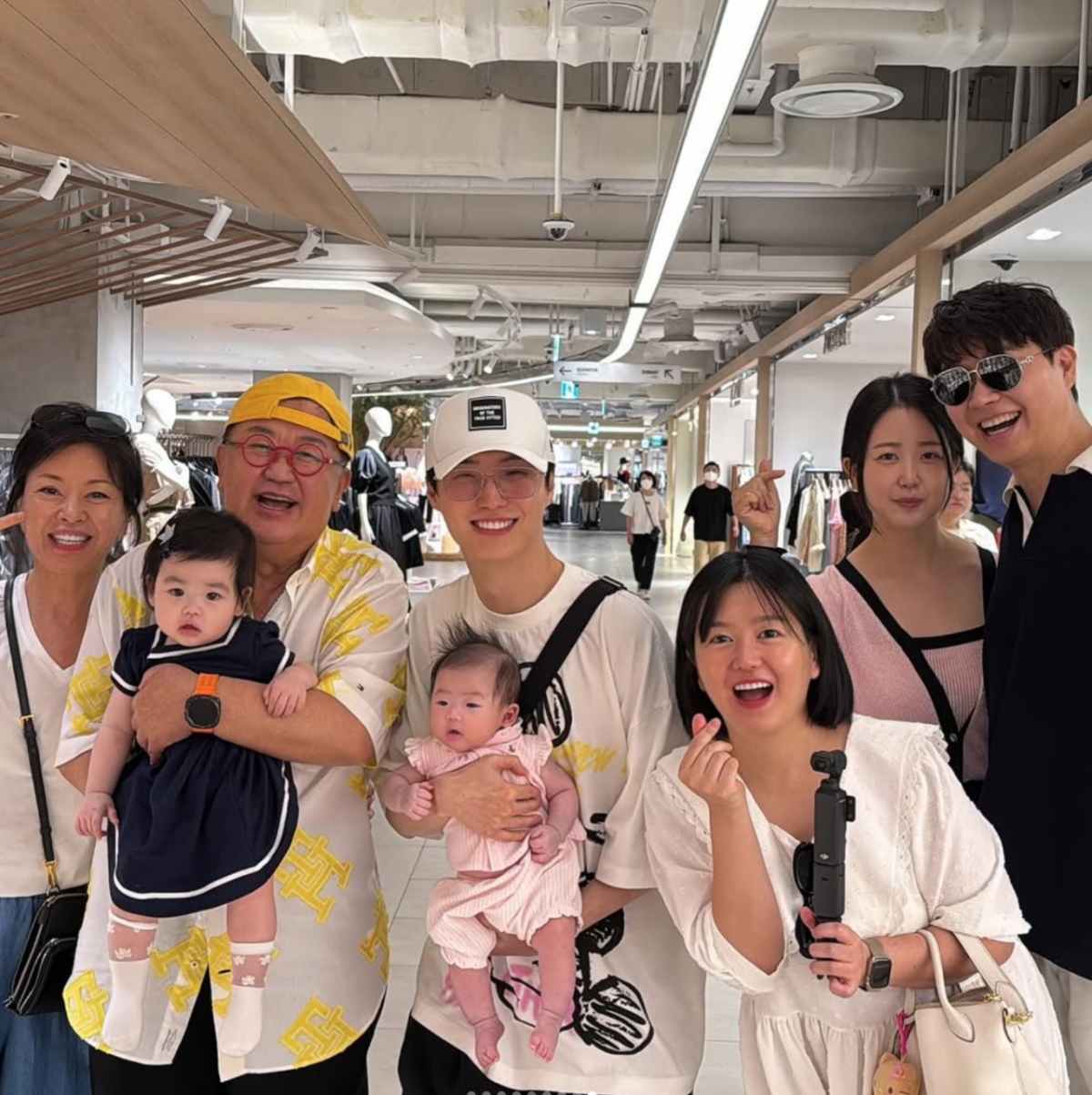 이수민은 "이엘이 첫외출로 온가족이 백화점 놀러갔다가 우리가족이 제일 사랑하는 가족을 우연히 만났어요"라며 "어찌나 반갑던지.
