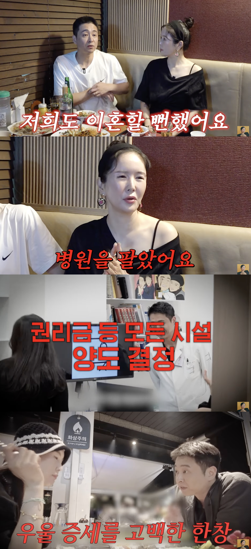 장영란은 "남편이 지금 2달째 쉬고 있다. 장영란이 더 잘되라고 자기 꿈을 접었다고 생각하니 좀 미안하다. 병원하면서 둘이 진짜 많이 싸웠다"고 고백했다. 이에 한창은 "저희 이혼할 뻔했어요. (병원 개업이) 2022년 초반이었을 것"이라며 당시를 회상했다.