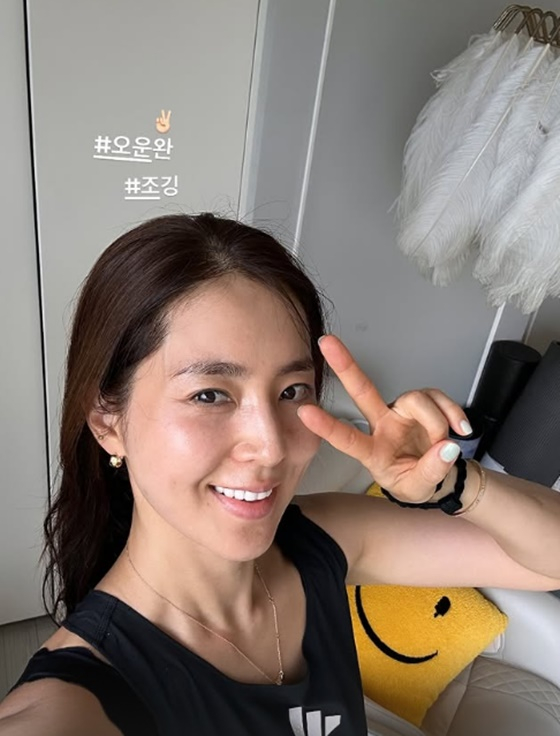 6일 한채아는 자신의 인스타그램 스토리에 "오운완(오늘 운동 완료). 조깅"이라는 글과 사진을 올렸다.