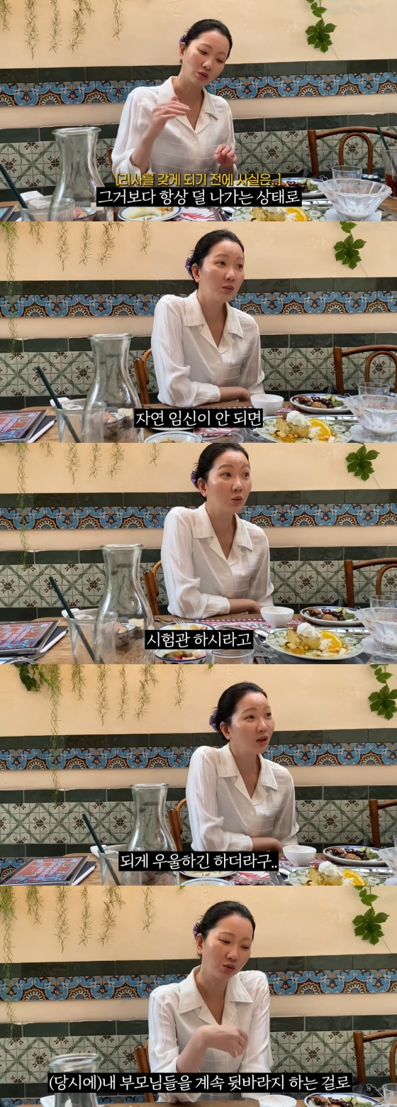 그는 "(병원에서) 한 2년 정도 자연 임신을 시도하다가 안 되면 시험관을 하라고 해서 알겠다고 했다. 아이를 갖기 어렵다는 얘기를 들었을 때 되게 우울하긴 하더라. 아기 생각이 없었는데도 그랬다"고 말했다.